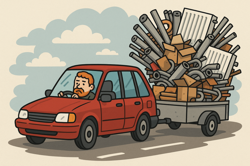 I had a great trip to the mainland to source all the radiators, pipes, boiler, oil tank and fittings I’d need to do the job. I took my car over for a couple of weeks but soon found I didn’t have enough room in it for everything, so I ended up buying a trailer to put the rest in. I had no trouble at all filling it up with all manner of things I couldn’t readily buy in Scilly. I was like a kid in a sweet shop. Oh, ok, lots of sweet shops!